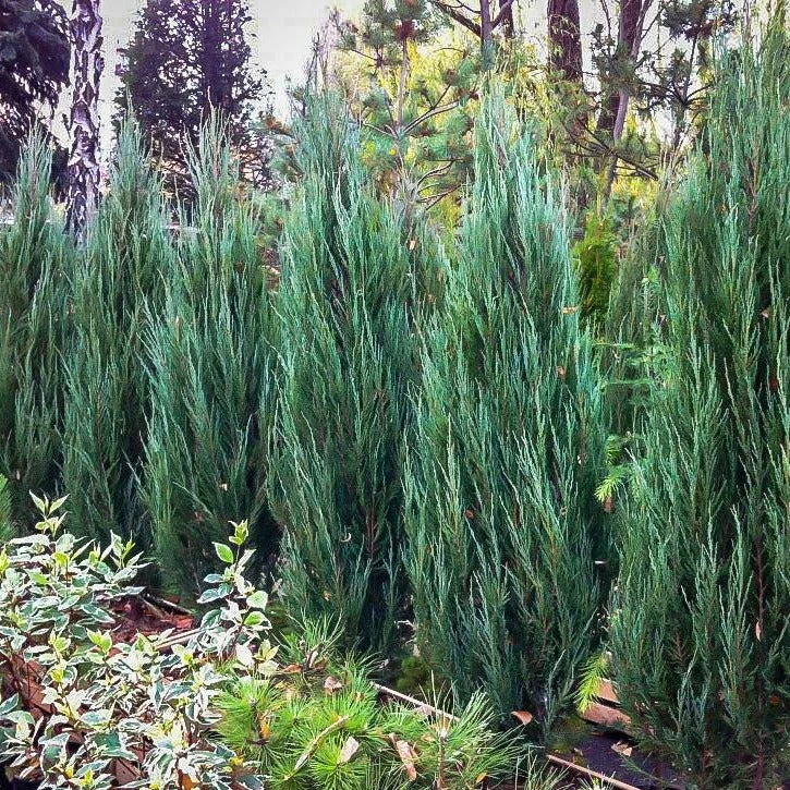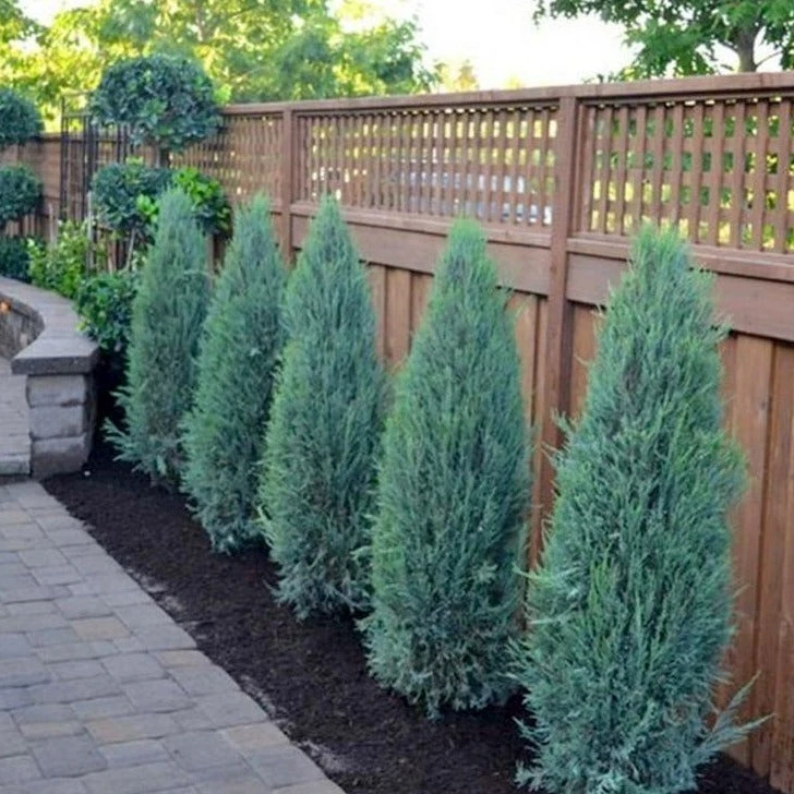You can easily create a high-end look with these pretty blue juniper trees. The Blue Arrow Juniper makes a great privacy hedge. It also looks lovely sprinkled throughout your landscape especially staggered along the front of your home for color and height contrast in a foundation planting. This fastigiate evergreen is tough, adaptable, and easy to grow.