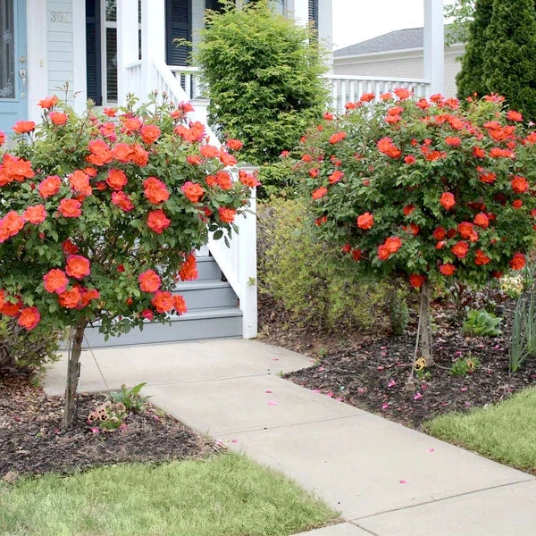 Plant your rose tree as a centerpiece in your flower bed or on either side of your front door for and upscale look. A small grouping of tree roses will add color and beauty to a sunny corner of your yard or home.