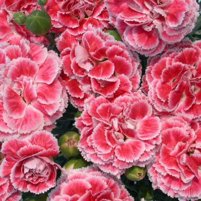 Dianthus Scent First® ‘Coral Reef’ was bred specifically for its magnificent color, form, and fragrance. They are a beautiful, rich addition to any garden space and add pleasing, eye-catching color to bouquets and cut flower arrangements as well. Frilly double blooms are striking shades of coral pink, fanning outward to a white, femininely frilled edge.