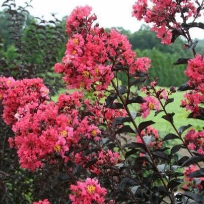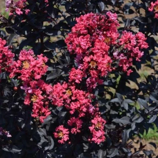 Features: The Midnight Magic™ Crape Myrtle is small tree that only gets to 4-6’ high and wide. The foliage is a rich maroon color that stays prominent throughout the growing season, unlike regular crape myrtles that have green foliage. Dark pink flowers appear in July and bloom all the way to August, proving a great color contrast against the dark foliage. These trees can even combat the heat of the south while providing flowers that are saturated in color and never fade.