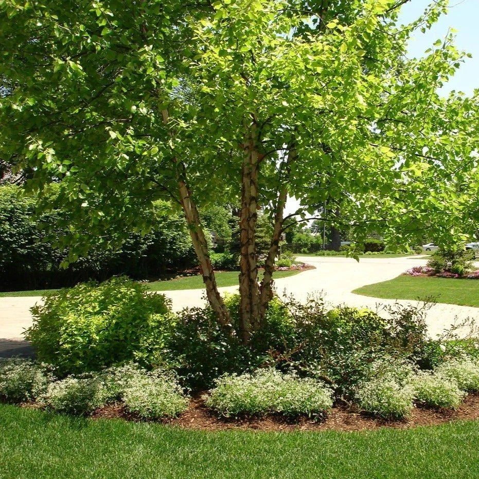 Plant your River Birch as a specimen tree in the yard or plant in clusters of 3. They are great for uplighting! Give them some room to grow because they will take off after the second year. Azaleas, and hydrangeas work great around this birch tree. Also, don’t forget to add a boulder to your landscape. Place a boulder off the side of the River Birch and it will really set it off!