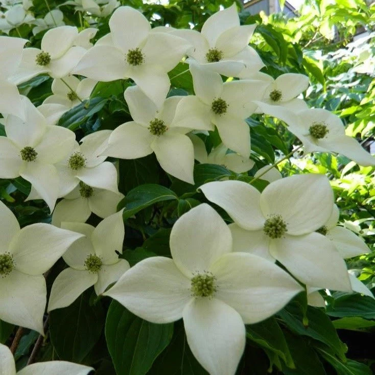 Enjoy stunning and prolific white blooms right in your own backyard. The White Kousa Dogwood shows off in spring with a grand floral display. The pretty green leaves are a lovely backdrop to highlight those bract flowers and offer shade in spring, summer, and fall. This flowering tree has a great shape. In its youth the shape is generally vase-like, but as it matures the canopy becomes pleasantly rounded.